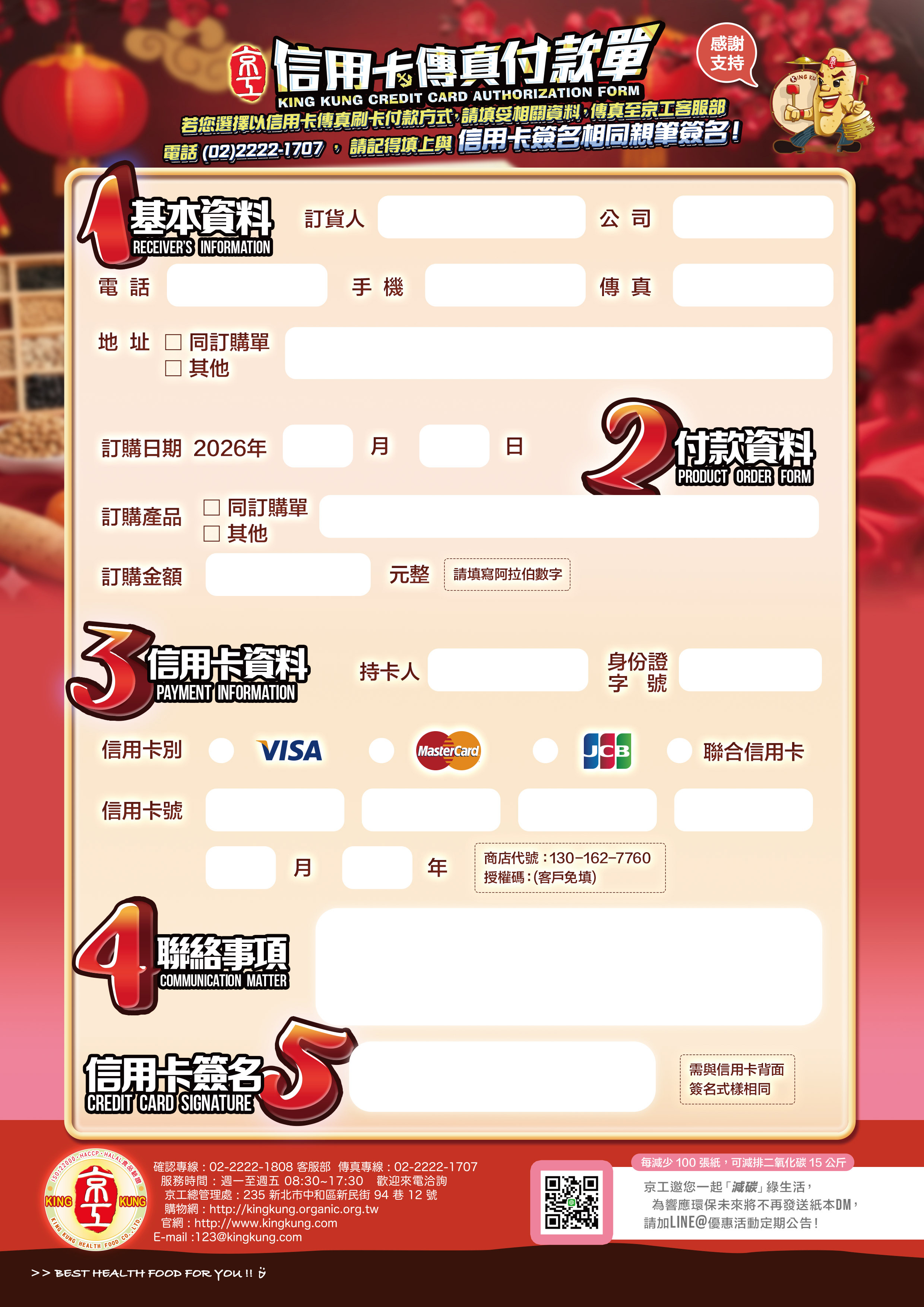 信用卡傳真刷卡單