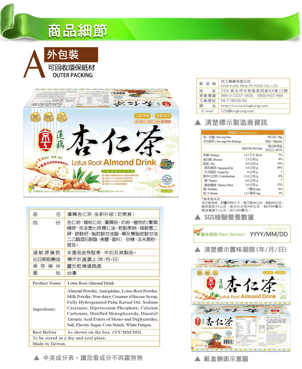 例:大包裝:杏仁減糖*1+芝麻*1+芋粥*1+田園*1