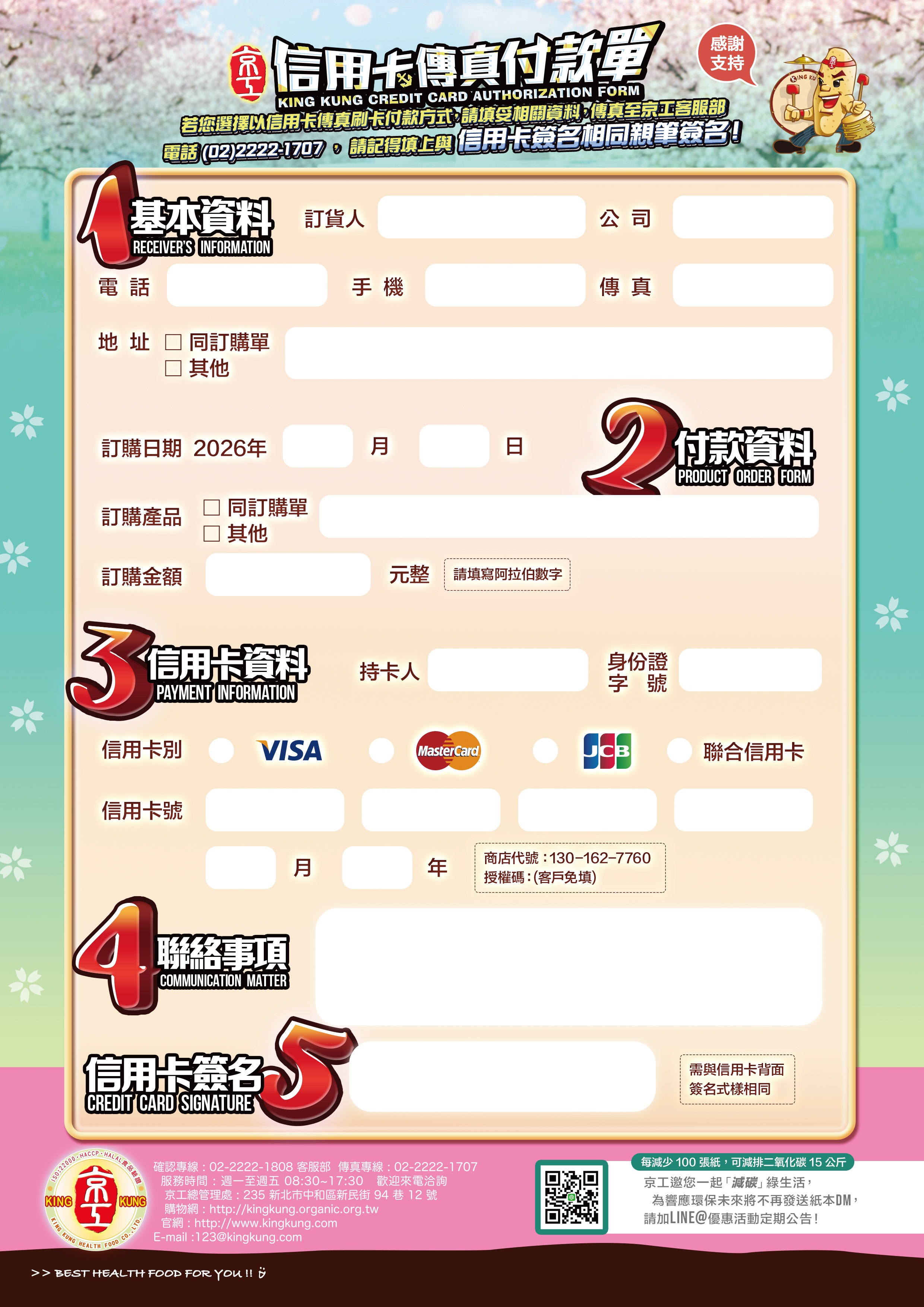信用卡傳真刷卡單