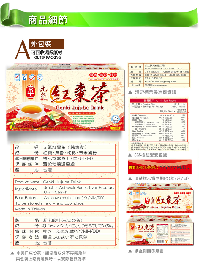 ♦ 紅棗又稱大棗,嚴選元氣草本植物依黃金比例調配,性溫味甘