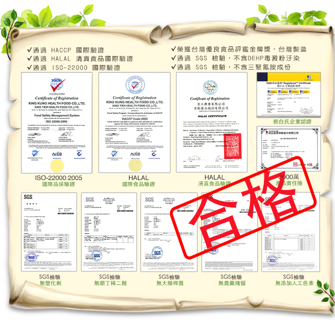 - 通過 ISO-22000,食品生產驗證
