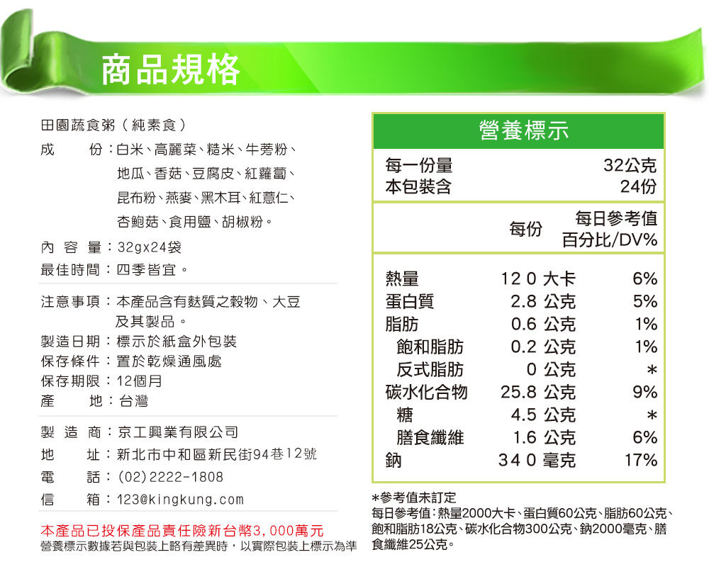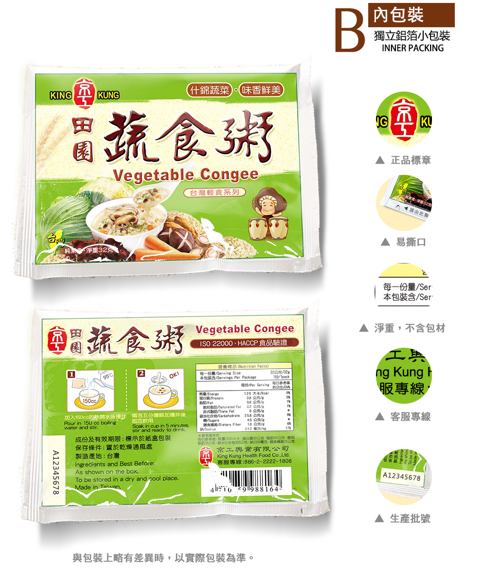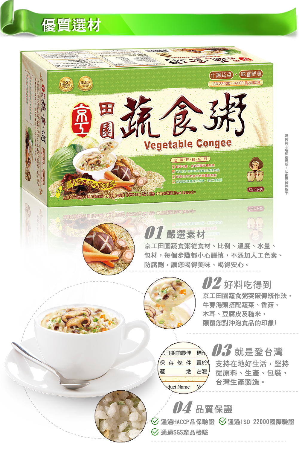 - 純素食,台灣製造,即沖即飲