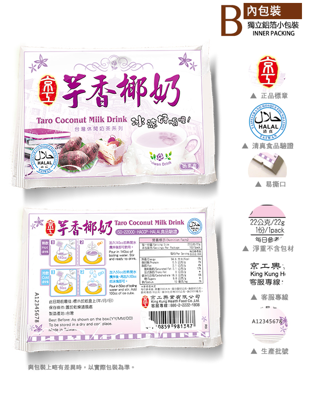 - 奶素食,台灣製造,即沖即飲