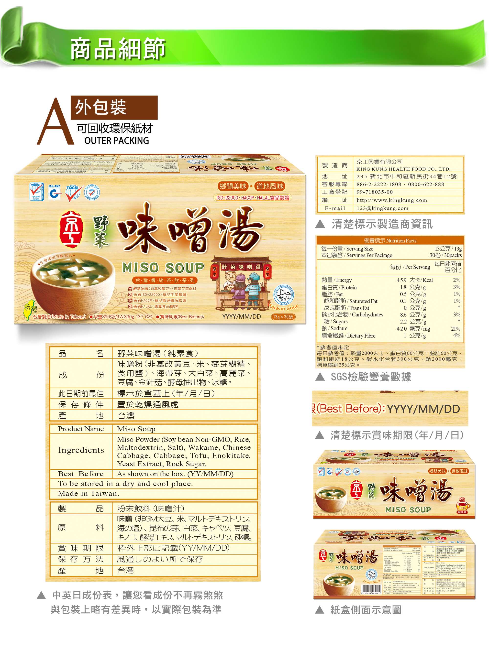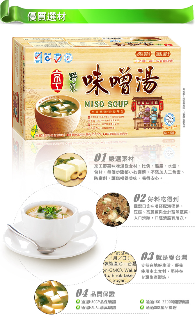 • 純素食,台灣製造,即沖即飲